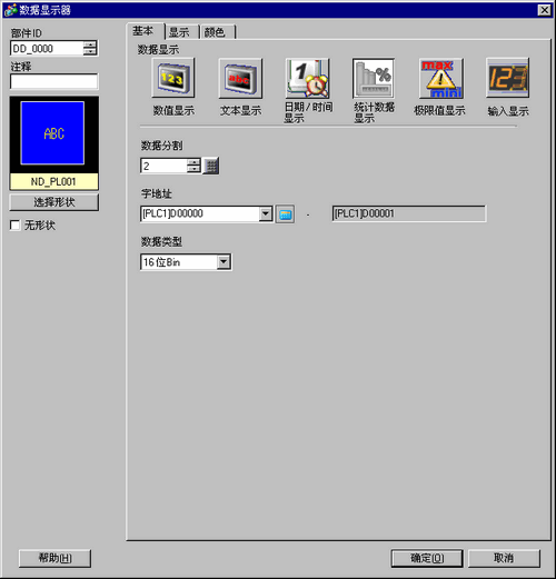 定义统计数据显示中数据的初始字地址。数据分割用于定义从统计数据显示部件中显示的该字地址开始的连续字地址数。当使用“数据块显示图”的同时使用“统计数据显示”时,该栏中的字地址将与图表的字地址相对应。