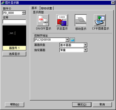 在[显示类型]中选择[移动显示],设置[控制字地址]