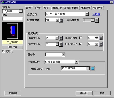 在[显示ON/OFF地址]中,选择用于更改图表显示/隐藏状态的地址(例如,M100),并点击[确定]。