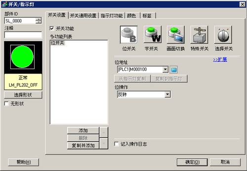 在[部件(P)]菜单上,指向[开关/指示灯],选择[位开关(B)]或点击