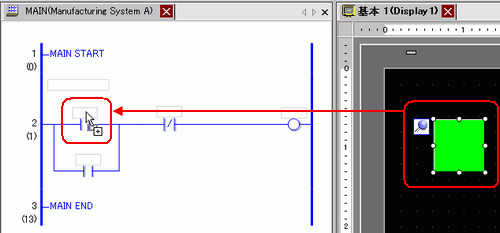 点击绘制画面上的部件。将它拖曳到拟为其分配部件的指令操作数。当指针从
