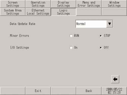 从[RUN]或[STOP]中选择人机界面开机时的逻辑操作。