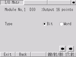 以位的形式将信号输出到目标模块。使用输入模块时,以位的形式显示来自I/O监控结果的输入状态。