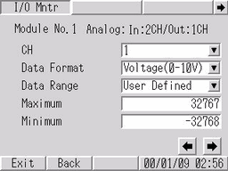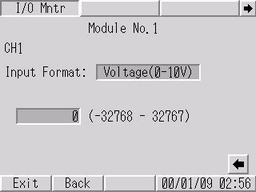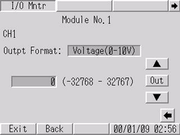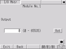 可设置和确认输出到目标模块的值。使用输入模块时,显示来自I/O监控结果的输入值。