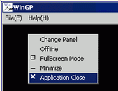 如果在[系统设置] - [主机] - [WinGP设置]选项卡的[窗口模式]中选择了[全屏],则不能从标题栏、菜单栏或任务栏退出。