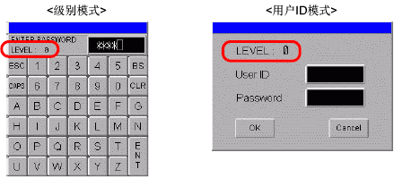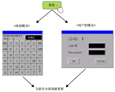 对于用户ID模式,如果该安全级别存在ID,则接受任何ID。当输入了正确的密码时,“当前安全级别”被更改为设置ID的级别,系统变量"H_LoginUserID"也被更新。