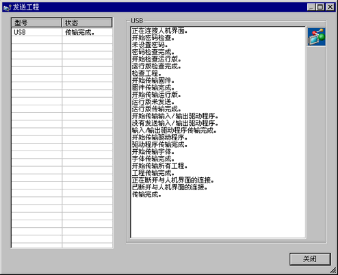 (在传输过程中,人机界面更改为传输模式,与控制器/PLC的通讯暂停。)