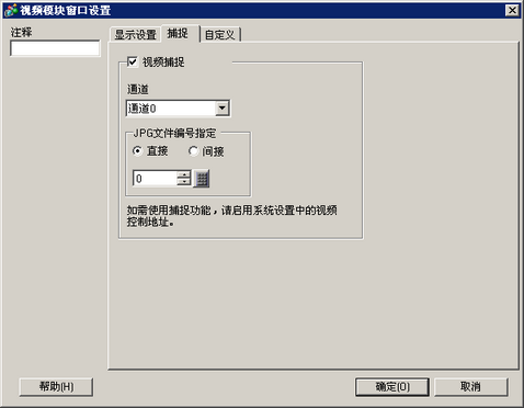 要使用视频捕捉功能,在[系统设置]窗口的[视频模块设置]页中选择[启用]并设置[视频控制起始地址]。在定义的视频地址中将位4置ON,从而启动视频捕捉。