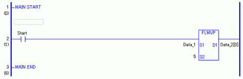 因此,即使常开指令的变量总是为ON,也只在一次扫描中执行FLMVP指令。