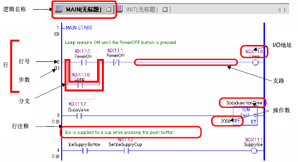 将显示逻辑画面的名称。点击选项卡可切换画面。