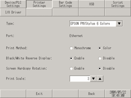 [Peripheral Settings]画面打开时, 触摸[Printer]。