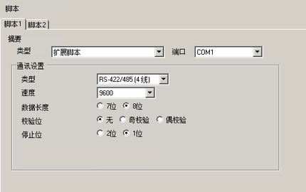 进行脚本设置,使用扩展脚本进行通讯。从[工程(F)]菜单中点击[系统设置(C)],然后选择[脚本]。确保将[类型]设置为[扩展脚本]。
