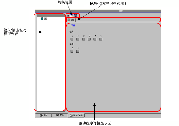 显示已显示的I/O驱动程序的选项卡。点击选项卡切换到各个I/O驱动程序的设置。