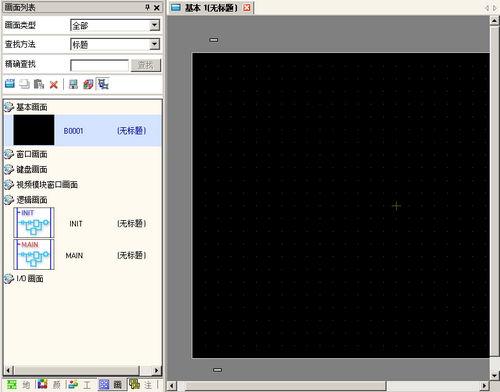 要在不配置控制器/PLC系列的通讯设置的情况下创建画面,请点击[新建画面]。画面编辑器将显示[基本 1]。