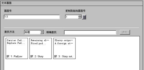 显示对话框时,会在这里列出为复制操作选择的所有文本画面号。