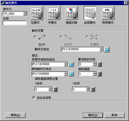 当[触发位地址]从OFF→ON时,执行[模式]中指定的操作。