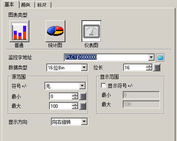 从[16位Bin]、[16位BCD]、[32位Bin]、[32位BCD]或[32位浮点]中选择图表显示数据类型。
