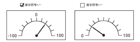 表示显示范围的最小和最大值。如果设置了[显示符号+/-],最小值显示为“-100”。如果未设置,最小值为“0”。最大值固定为“100”。