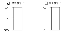 表示显示范围的最小和最大值。如果设置了[显示符号+/-],最小值显示为“-100”。如果未设置,最小值为“0”。最大值固定为“100”。