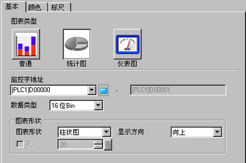 从[16位Bin]、[16位BCD]、[32位Bin]、[32位BCD]或[32位浮点]中选择图表显示数据类型。