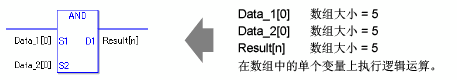AND和ANDP指令总是处于接通状态。当使用AND和ANDP指令时,如果为操作数S1、S2和D1指定的变量类型不同,就会发生错误。 请为操作数S1、S2 和D1指定相同的变量类型。
