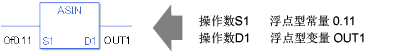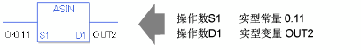 ASIN和ASINP指令是反正弦三角函数指令。 ASIN指令计算S1的反正弦并将结果保存在D1中。sin-1(S1) 保存在 D1中。请为S1输入一个-1.0至1.0间的值,D1中的结果是一个以弧度表示的实数,其值在-Pi/2和Pi/2之间。Pi约等于3.1415926535897(实数)。