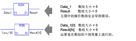 ASIN和ASINP指令总是处于接通状态。使用ASIN和ASINP指令时,如果为操作数S1和D1指定的变量类型不同,就会发生错误。 请为操作数S1和D1指定相同的变量类型。