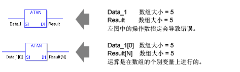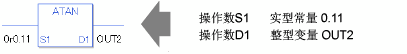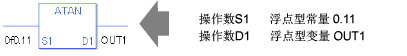 ATAN和ATANP指令总是处于接通状态。使用ATAN和ATANP指令时,如果为操作数S1和D1指定的变量类型不同,就会发生错误。 请为操作数S1和D1指定相同的变量类型。