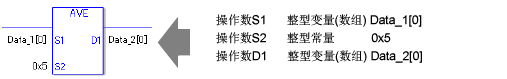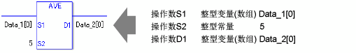 AVE和AVEP指令均用于计算平均值。当执行AVE指令时,将对从地址S1开始的S2个数组元素求平均值,并将结果保存在D1中。AVE和AVEP指令总是处于接通状态。如果为操作数 S1 和 D1 指定的变量类型不同,那么在使用AVE和AVEP指令时就会发生错误。 请为操作数S1和D1指定相同的变量类型。