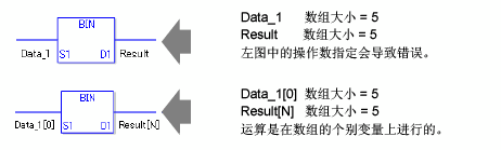 使用BIN/BINP指令时,如果为操作数S1和D1指定的变量类型不同,就会发生错误。