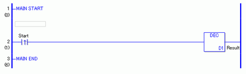 当使用常开指令时,只要指令接通,DEC指令就会在每次扫描时不断执行并从D1中减1。