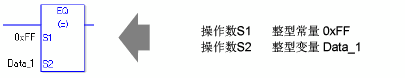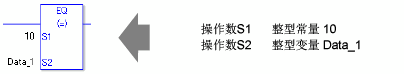 EQ指令是比较指令。EQ指令比较S1和S2,如果比较结果是S1 = S2,那么指令就接通。当比较实值时需要留意。例如,如果操作数的值是1.99999999999,它就不等于2.00000000000。