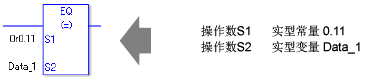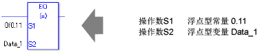 使用EQ指令时,如果为操作数S1和D1指定的变量类型不同,就会发生错误。 请为操作数S1和S2指定相同的变量类型。