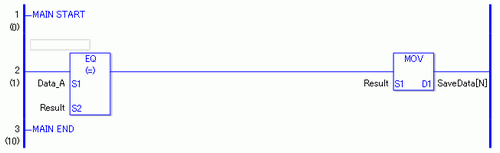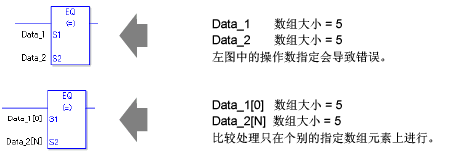 比较Data_A和Result,确定它们是否相等。如果EQ指令的结果是S1=S2,那么EQ指令就接通,然后就执行EQ指令右边的指令。在上图中,右边的指令是MOV指令。