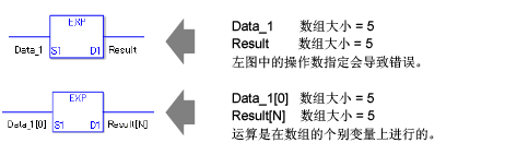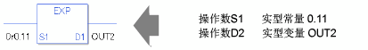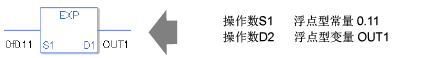 EXP和EXPP指令总是处于接通状态。 使用EXP和EXPP指令时,如果为操作数S1和D1指定的变量类型不同,就会发生错误。 请在操作数 S1 和 D1 中指定相同的变量类型。