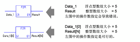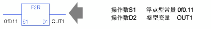 F2R/F2RP指令将浮点型变量转换为实型变量。 在S1中指定您想转换的浮点型变量或常量并为D1中的转换输出结果指定实型变量。您只能为S1中的输入指定浮点型变量,为D1中的输出指定实型变量。当您想在计算或比较中使用不同的变量类型时请使用转换指令。