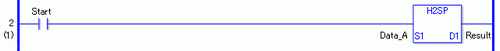 当上升沿指令置ON时,将执行H2S指令。当执行 H2S指令时,会将 Data_A 的 H2S 转换结果保存在 D1 中。