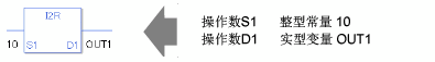 I2R/I2RP指令将整型变量转换为实型变量。在S1中指定您想转换的整型变量或常量并为D1中的转换输出结果指定实型变量。您只能为S1中的输入指定整型变量,为D1中的输出指定实型变量。当您想在计算或比较中使用不同的变量类型时请使用转换指令。