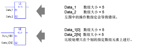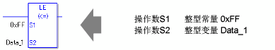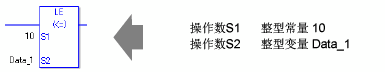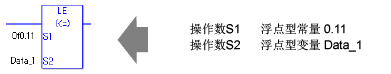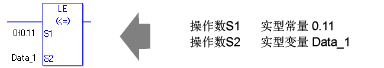 当比较实值时需要留意。当比较实值时需要留意。例如,如果操作数的值是2.000000000001,它不小于等于2。当使用LE指令时,如果在操作数S1和S2中指定的不是同一类型的变量,就会发生错误。请为操作数S1和S2指定相同的变量类型。