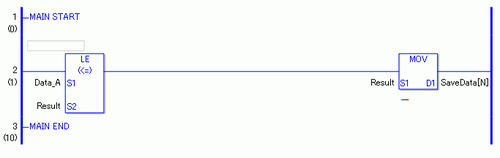 比较Data_A和Result,确定Data_A是否小于等于Result。如果LE指令的结果是S1 <= S2,那么LE就接通。然后就执行LE指令右边的指令。在上图中,右边的指令是MOV指令。