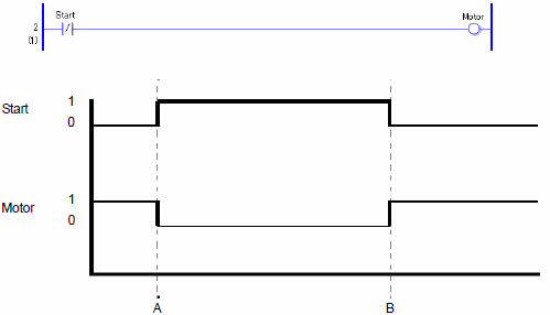 当位变量Start置ON时,NC指令触点断开。位变量Motor置OFF。