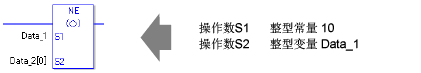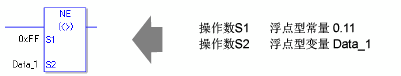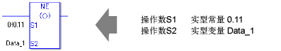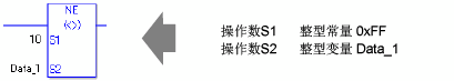 当比较实值时需要留意。例如,如果操作数的值是2.000000000001,它就不等于2。当使用NE指令时,如果在操作数S1和S2中指定的不是同一类型的变量,就会发生错误。请为操作数S1和S2指定相同的变量类型。