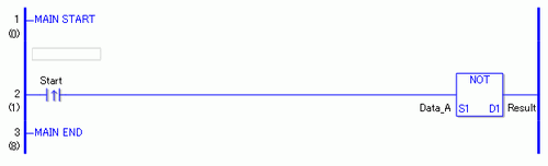 当上升沿指令置ON时,将执行NOT指令。当执行NOT指令时,将逻辑取反Data_A得到的结果保存在D1中。