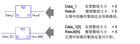 R2I/R2IP指令将实型变量转换为整型变量。在S1中指定您想转换的实型变量或常量并为D1中的转换输出结果指定整型变量。您只能为S1中的输入指定实型变量,为D1中的输出指定整型变量。当您想在计算或比较中使用不同的变量类型时请使用转换指令。