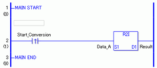 当上升沿指令置ON时,将执行R2I指令。当执行R2I指令时,会将Data_A 的R2I转换结果保存在D1中。