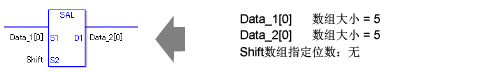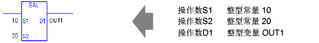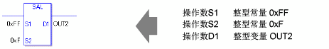 SAL和SALP指令总是处于接通状态。使用SAL和SALP指令时,如果为操作数S1和D1指定的变量类型不同,就会发生错误。 请为操作数S1和D1指定相同的变量类型。