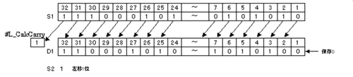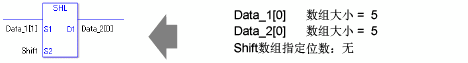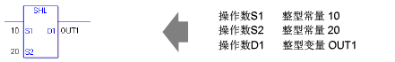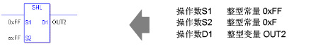 当执行SHL或SHLP指令时,会将S1的各个位右移S2个位。每移动一位时,最左侧的位(最高位)将丢失。将0保存在最底位的空位中。最后将结果保存到D1中。