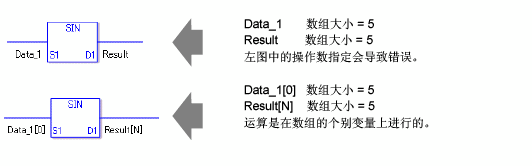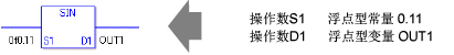 SIN和SINP指令总是处于接通状态。使用SIN和SINP指令时,如果为操作数S1和D1指定的变量类型不同,就会发生错误。 请在操作数S1和D1中指定相同的变量类型。