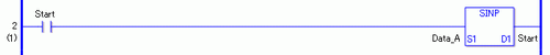 当上升沿指令置ON时,将执行SIN指令。SIN指令计算Data_A 的正弦并将结果保存在D1 中。