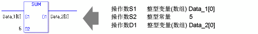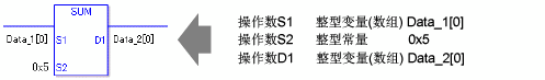 SUM/SUMP指令均执行求和计算。当执行SUM指令时,将对从地址S1开始的S2个数组元素求和,并将结果保存在D1中。SUM/SUMP指令总是处于接通状态。如果为操作数S1和D1指定的变量类型不同,那么在使用SUM/SUMP指令时就会发生错误。请为操作数S1和D1指定相同的变量类型。